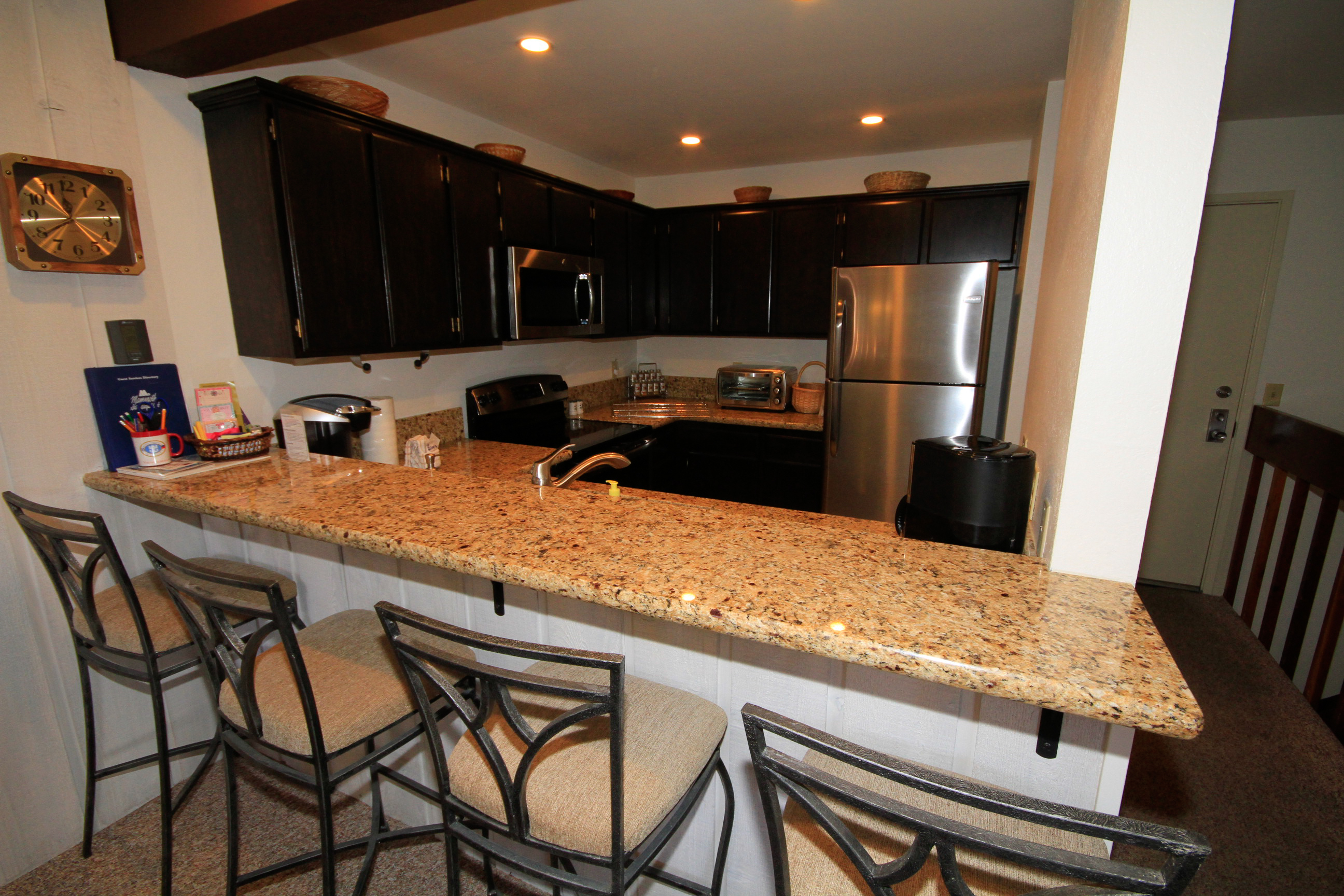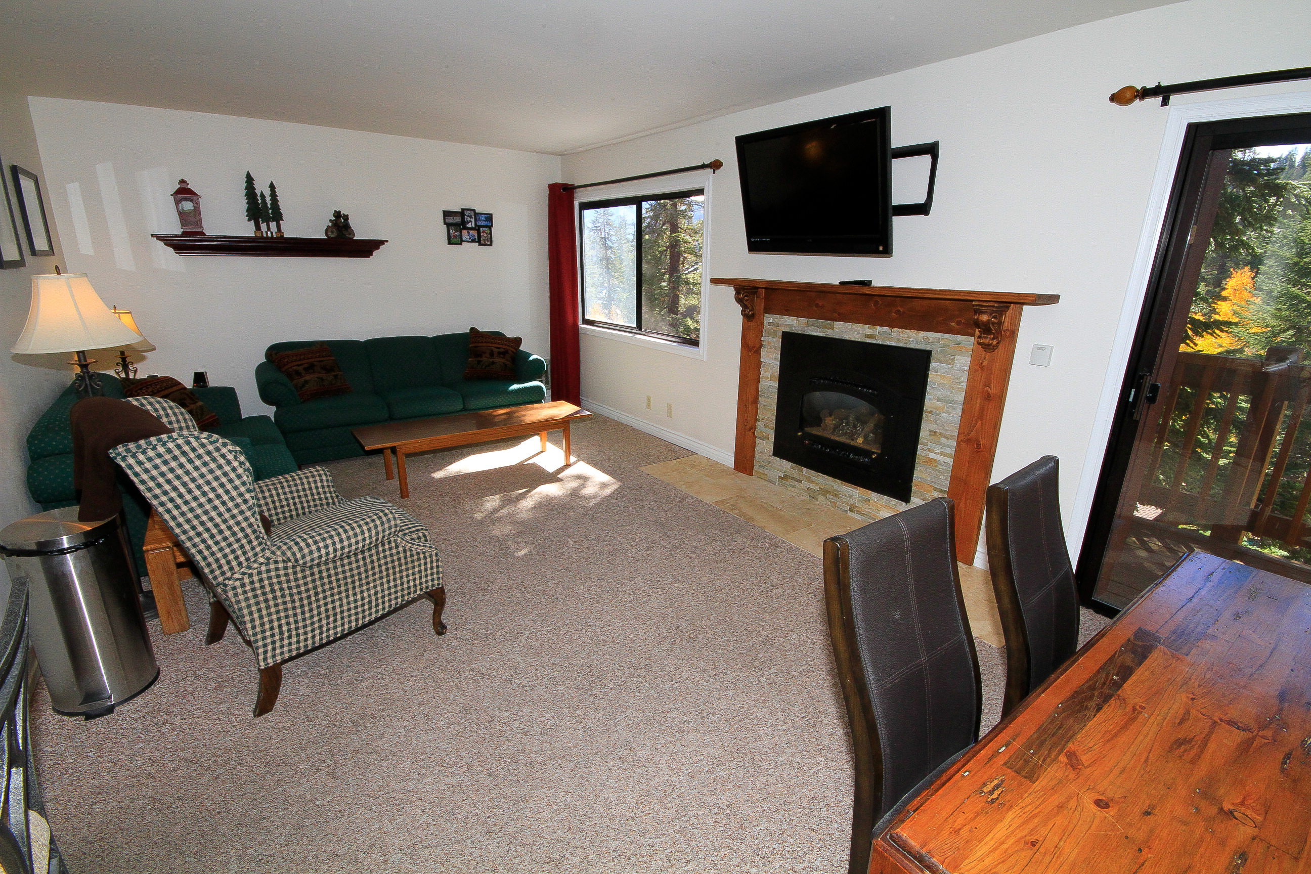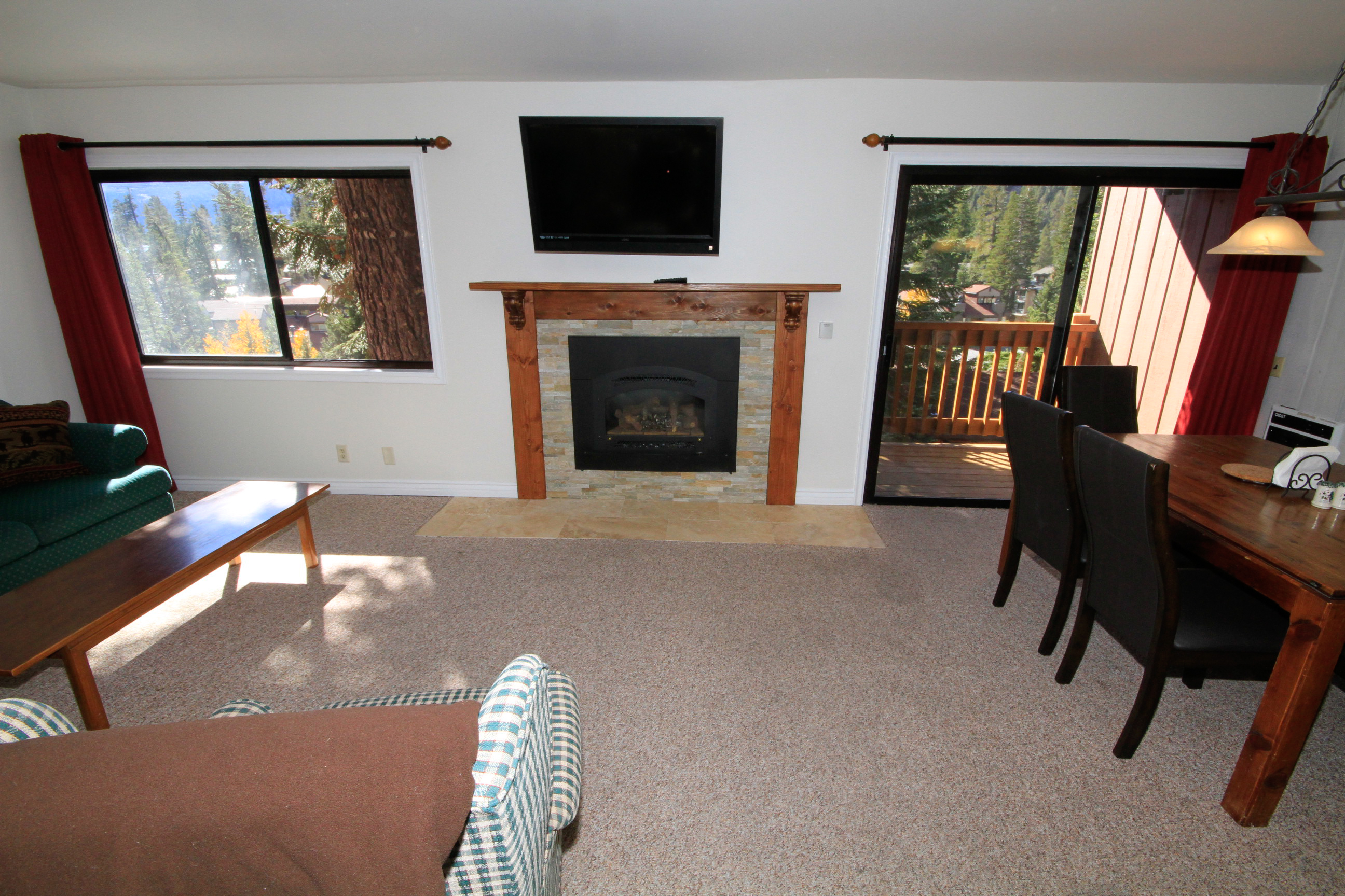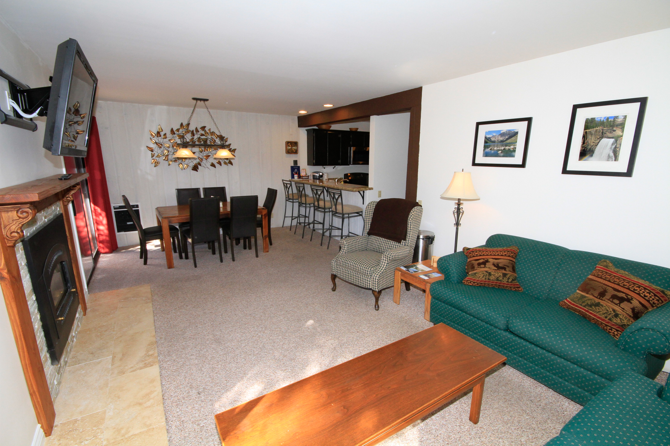 Unit Amenities: The full sized kitchen is complete with stove, oven, microwave, coffee maker, refrigerator, dishwasher, dishware, and cooking materials! For those cold winter nights, get cozy next to the propane fireplace!