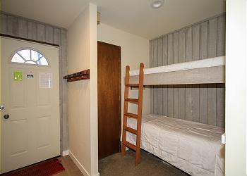 Bed Arrangement: Retire at night to the master bedroom which has a very comfortable queen size bed and a small TV. Full size bunks built into the entryway can accommodate two guests.