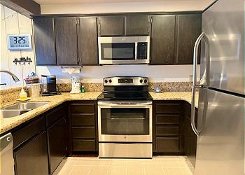 Unit Amenities: The full sized kitchen is complete with stove, oven, microwave, coffee maker, refrigerator, dishwasher, dishware, and cooking materials! For those cold winter nights, get cozy next to the propane fireplace!